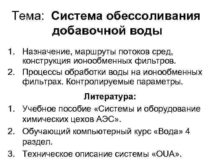 Тема Система обессоливания добавочной воды 1 Назначение маршруты