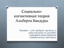 Социальнокогнитивная теория Альберта Бандуры Человек это продукт