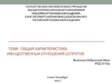 ТЕМА ОБЩАЯ ХАРАКТЕРИСТИКА ИМУЩЕСТВЕННЫХ ОТНОШЕНИЙ СУПРУГОВ Выполнил