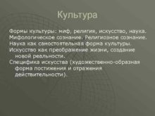 Культура Формы культуры миф религия искусство наука Мифологическое