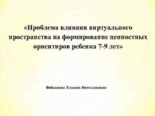 Проблема влияния виртуального пространства на формирование ценностных