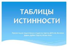 ТАБЛИЦЫ ИСТИННОСТИ Презентацию подготовили студенты группы ДЭЭ-106 Беляева