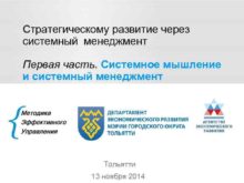 Стратегическому развитие через системный менеджмент Первая часть Системное