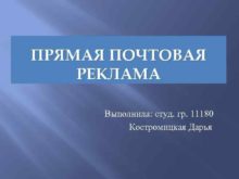 ПРЯМАЯ ПОЧТОВАЯ РЕКЛАМА Выполнила студ гр 11180 Костромицкая