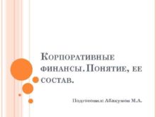 КОРПОРАТИВНЫЕ ФИНАНСЫ ПОНЯТИЕ ЕЕ СОСТАВ Подготовил Абакумов М