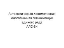Автоматическая локомотивная многозначная сигнализация единого ряда АЛС ЕН