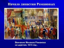 Начало династии Романовых Венчание Михаила Романова на царство