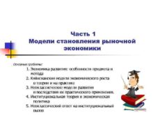 Часть 1 Модели становления рыночной экономики Основные проблемы