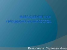 НАБЛЮДЕНИЕ КАК ПРОЦЕДУРА БАНКРОТСТВА Выполнила Сергеева Инна