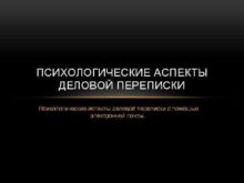 ПСИХОЛОГИЧЕСКИЕ АСПЕКТЫ ДЕЛОВОЙ ПЕРЕПИСКИ Психологические аспекты деловой переписки