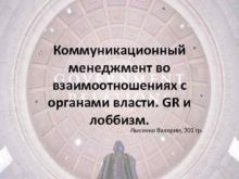 Коммуникационный менеджмент во взаимоотношениях с органами власти GR