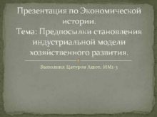 Презентация по Экономической истории Тема Предпосылки становления индустриальной