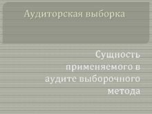 Аудиторская выборка Сущность применяемого в аудите выборочного метода