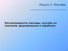 Модуль 5 Массивы Рассматриваются массивы способы их описания