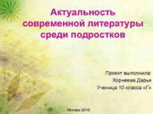 Актуальность современной литературы среди подростков Проект выполнила Корнеева