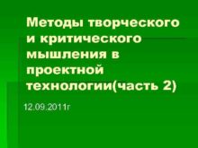 Методы творческого и критического мышления в проектной технологии часть