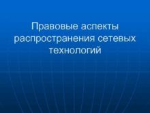 Правовые аспекты распространения сетевых технологий План 1