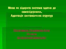 Мова як відкрита система здатна до самопідтримки Адаптація