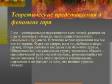 Теоретические представления о феномене горя Горе универсальное