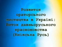 Розвиток ораторського мистецтва в Україні Виток давньоруського красномовства