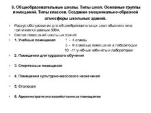 8 Общеобразовательные школы Типы школ Основные группы помещений