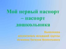 Мой первый паспорт паспорт дошкольника Выполнила воспитатель