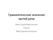 Грамматические значения частей речи Имя существительное Глагол Имя