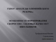 ГБПОУ КОЛЛЕДЖ ОЛИМПИЙСКОГО РЕЗЕРВА ОСОБЕННОСТИ ФОРМИРОВАНИЯ СКОРОСТНО