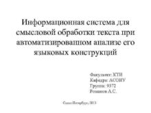 Информационная система для смысловой обработки текста при автоматизированном