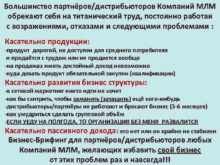Большинство партнёров дистрибьюторов Компаний МЛМ обрекают себя на титанический
