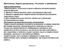 Математика Задачи дисциплины Регламент и требования Задачи дисциплины