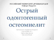 РОССИЙСКИЙ УНИВЕРСИТЕТ ДРУЖБЫ НАРОДОВ Кафедра Хирургии Острый одонтогенный