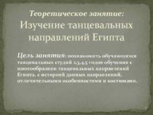 Теоретическое занятие Изучение танцевальных направлений Египта Цель занятия