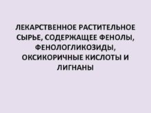 ЛЕКАРСТВЕННОЕ РАСТИТЕЛЬНОЕ СЫРЬЕ СОДЕРЖАЩЕЕ ФЕНОЛЫ ФЕНОЛОГЛИКОЗИДЫ ОКСИКОРИЧНЫЕ КИСЛОТЫ