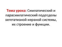 Тема урока Симпатический и парасимпатический подотделы вегетативной нервной