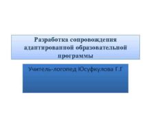 Разработка сопровождения адаптированной образовательной программы Учитель-логопед Юсуфкулова Г