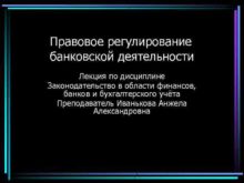 Правовое регулирование банковской деятельности Лекция по дисциплине Законодательство