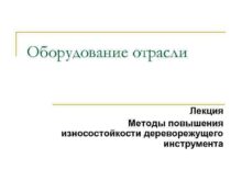 Оборудование отрасли Лекция Методы повышения износостойкости дереворежущего инструмента