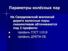 Параметры колёсных пар На Свердловской железной дороге колесные