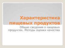 Характеристика пищевых продуктов Общие сведения о пищевых продуктах