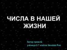 ЧИСЛА В НАШЕЙ ЖИЗНИ Автор проекта ученица 5