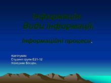 Інформація Види інформації Інформаційні процеси підготував Студент групи