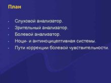 План Слуховой анализатор Зрительный анализатор