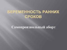БЕРЕМЕННОСТЬ РАННИХ СРОКОВ Самопроизвольный аборт Самопроизвольный аборт