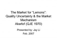 The Market for Lemons Quality Uncertainty the