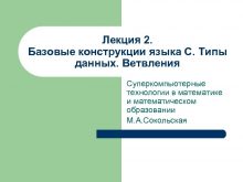 Лекция 2 Базовые конструкции языка С Типы данных