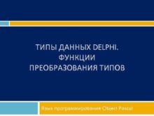 ТИПЫ ДАННЫХ DELPHI ФУНКЦИИ ПРЕОБРАЗОВАНИЯ ТИПОВ Язык программирования