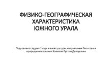 ФИЗИКО-ГЕОГРАФИЧЕСКАЯ ХАРАКТЕРИСТИКА ЮЖНОГО УРАЛА Подготовил студент 1 курса