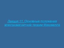 Лекция 11 Основные положения электромагнитной теории Максвелла