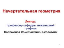 Начертательная геометрия Лектор профессор кафедры инженерной графики Соломонов